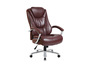 Кресло для руководителя 9373 №34787 - высота спинки: 76 см, высота от пола до сиденья: 49-59 см, диаметр крестовины: 70 см, объем: 0,32 м3, вес: 25,8 кг, механизм качания без фиксации, регулировка жесткости качания по весу сидящего, ограничения по весу: 250 кг, основание: металл, подголовник, подлокотники, поясничный упор, регулировка по высоте, в наличии в Нижнем Тагиле.