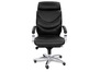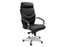 Кресло для руководителя LEEDS CHROME A кожа+кож.зам. №38308 - высота спинки: 74 см, высота от пола до сиденья: 50-57 см, диаметр крестовины: 72 см, ширина спинки: 53 см, объем: 0,37 м3, вес: 25 кг, механизм качания без фиксации, регулировка жесткости качания по весу сидящего, ограничения по весу: 150 кг, основание: металл, каркас: немонолитный, подголовник, подлокотники, поясничный упор, регулировка по высоте, резиновые колеса для паркета, в наличии в Нижнем Тагиле.